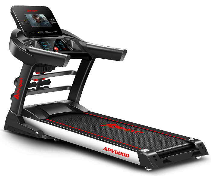 APVsport Bieżnia elektryczna do biegania i chodzenia APV6000, ekran TFT ANDROID 10.1 cala, dodatkowe wyposażenie PROMOCJA! – masażer, hantle, brzuszki, mata, pas biegowy 135x48cm